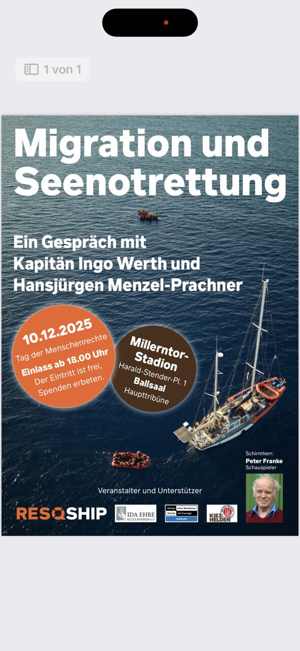 Wir berichten und diskutieren aus erster Hand mit Kapitän Ingo Werth von RESQSHIP e.V. und Hansjürgen Menzel-Prachner