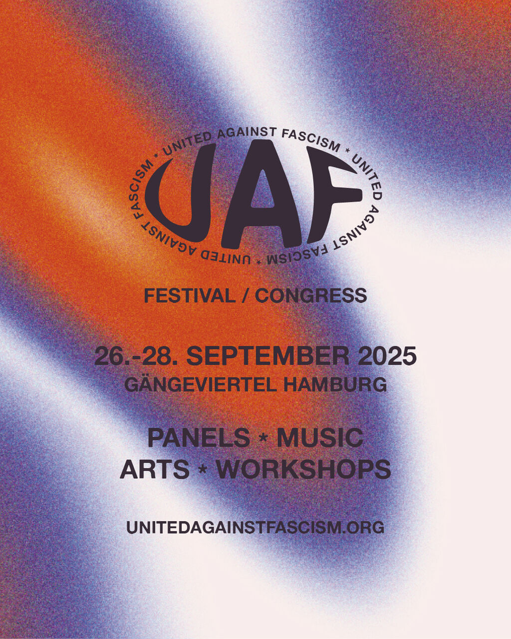 Gemeinsam wollen wir im Rahmen des UAF einen Ort der Vernetzung und des Austauschs schaffen, der sich aus mehreren Perspektiven mit dem Thema Faschismus auseinandersetzt, mit Panels, Workshops, Musik, Party, Kunst und mehr.