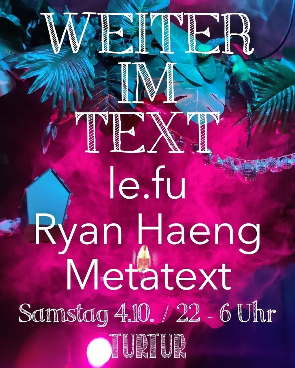 Weiter im Tanz! Zum mittlerweile dritten Male lädt unser liebster Metatext sich illustre Gäst*innen aus der weiten Welt der elektronischen Musiklandschaft! Diesmal beehren uns le.fu, Ryan Haeng und nätürlich Sir Metatext himself 🔥