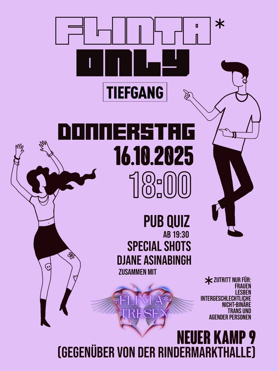 Der zweite FLINTA*only Abend im Tiefgang, diesmal zusammen mit dem FLINTA*Tresen!