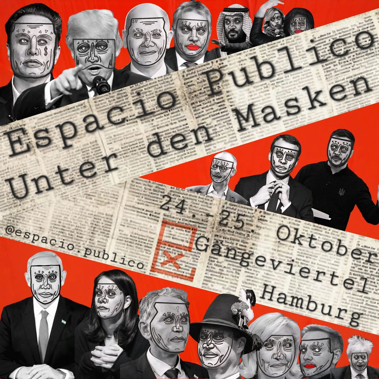 Espacio Publico präsentiert: Einen Stich in die Seifenblase der Akzeptanz einer scheinbar perfekten Plastikwelt hinter deren Masken sich unzählige Fratzen widerlicher Widersprüche verbergen.