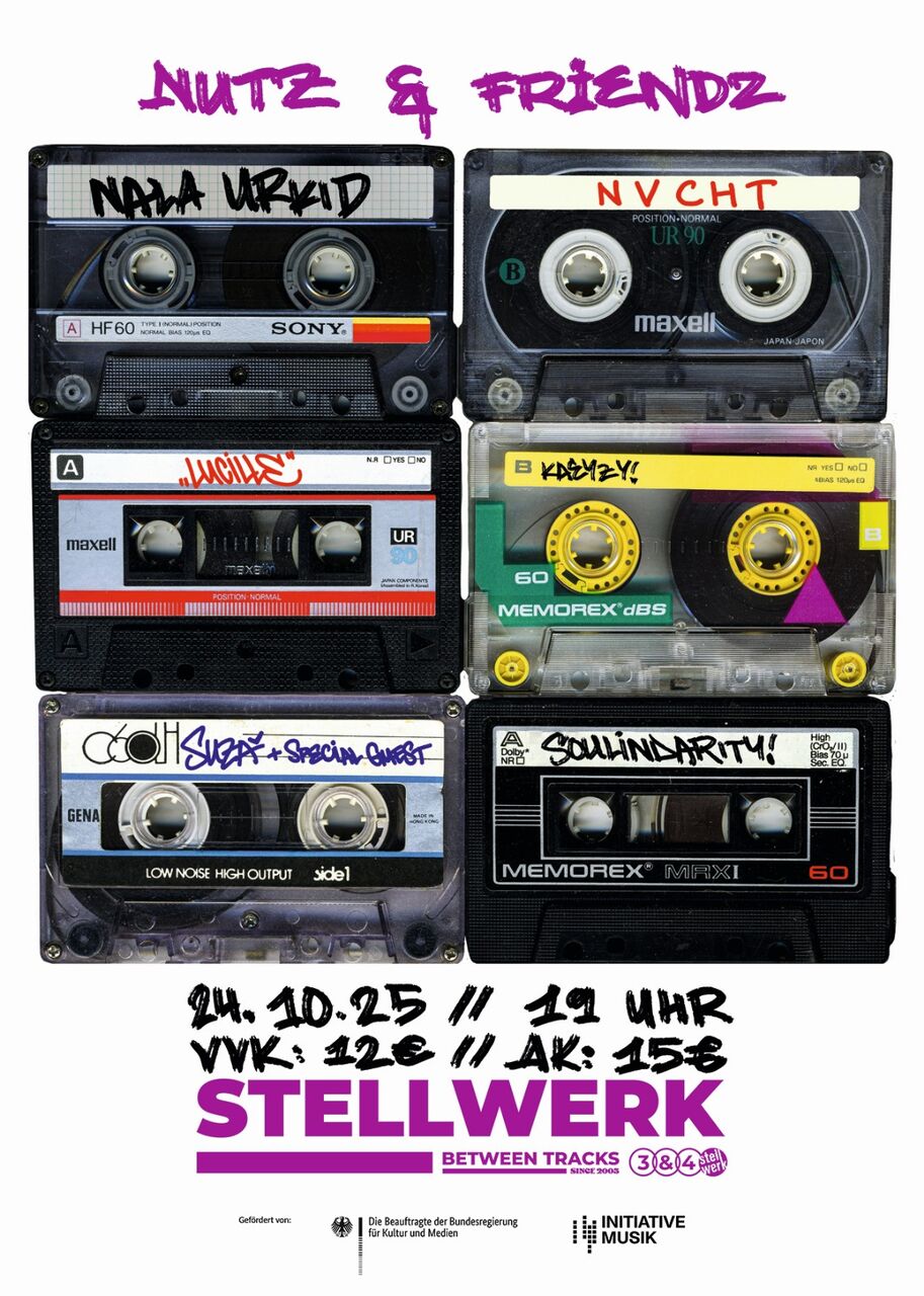 Nutz entert die Bühne mit einem reinen Deluxe FLINTA* Showcase: Suza - Nala Urkid - Kaeyzy - Lucille - Nvcht und Überraschungsgäst*innen. Für die Aftershowparty steht -Soulindarity an den Decks. Es gibt kein Timetable, da das Konzert wie ein Mixtape aufgezogen ist, komm rum und lass dich mitnehmen vom Sound, unserer Energie & ein paar kleinen Specialls.