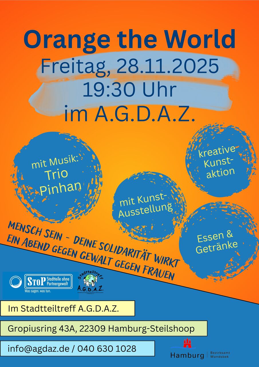 Auch im A.G.D.A.Z. werden wir am 28.11. kreativ mit Kunst und Musik und setzen gemeinsam ein Zeichen gegen Gewalt.