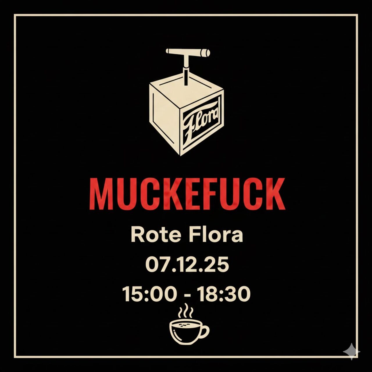 Wir freuen uns sehr, euch im Dezember wieder zum Muckefuck-Café in der Roten Flora begrüßen zu dürfen!
