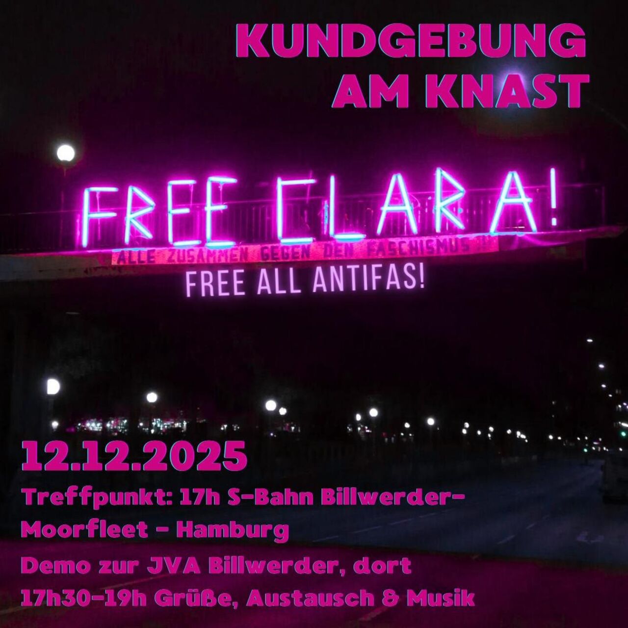 Treffpunkt: 17.00 Uhr S-Bahn Billwerder-Moorfleet, von dort Demo zur JVA