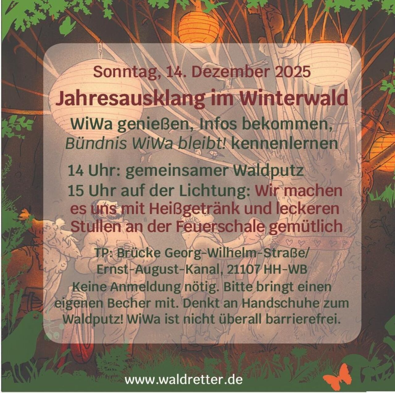 14 Uhr: GEMEINSAMER WALDPUTZ. Bring dir Handschuhe mit. Treffpunkt: Brücke Georg-Wilhelm-Straße/Ernst-August-Kanal.
