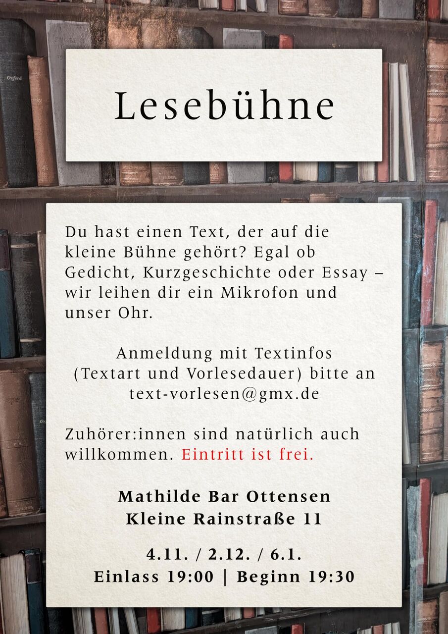 Lesebühne für selbstgeschriebene, diskriminierungssensible literarische Texte - Eintritt frei, Zuhörer:innen willkommen. Nächste Termine: 10.2 / 10.3 / 14.4