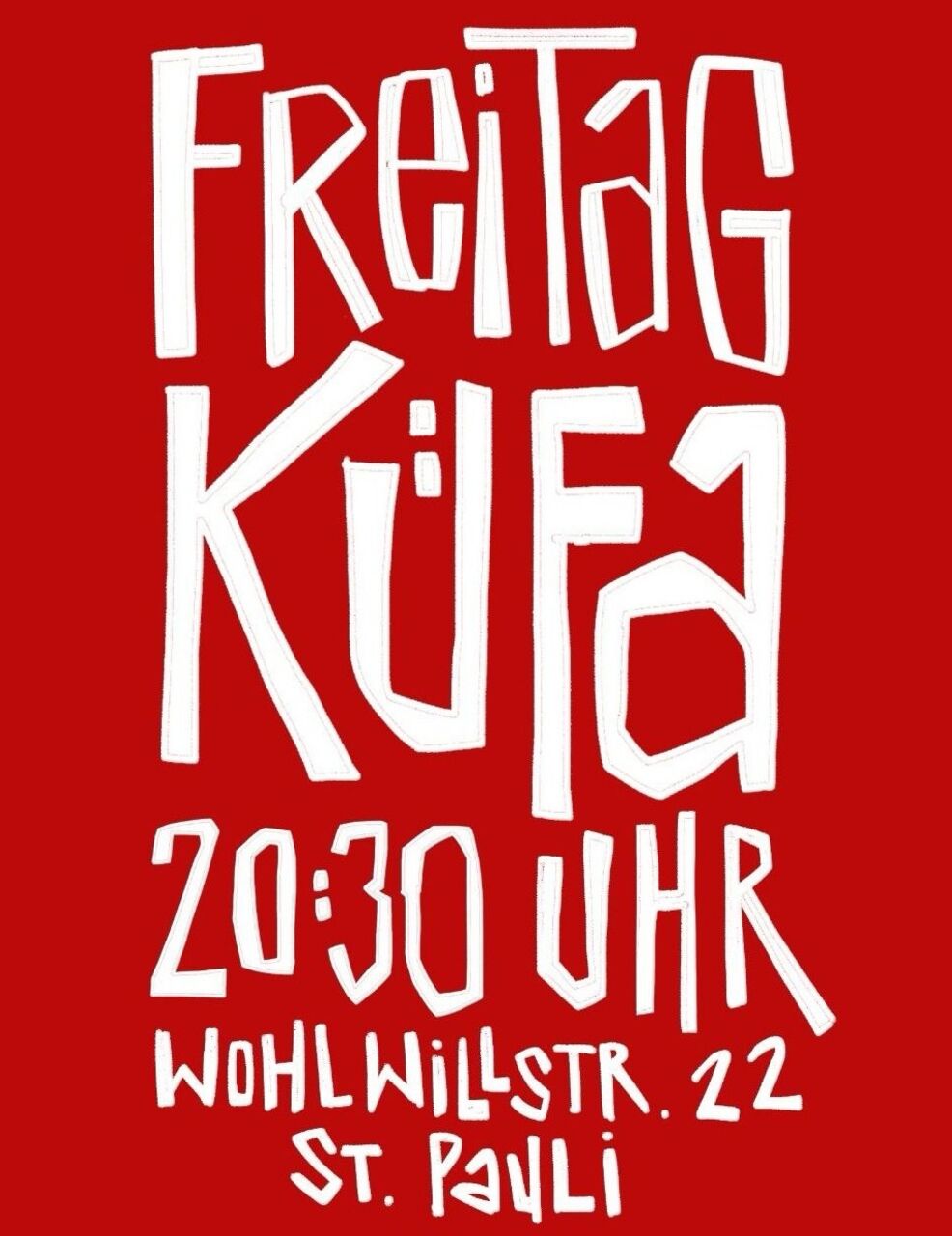 in der küche für alle gibt es jeden freitag ein warmes essen gegen spende, drei gänge und vegan. ab 20:30 uhr wird aufgetischt, kommt vorbei zum gemeinsam essen, trinken, kickern und quatschen.