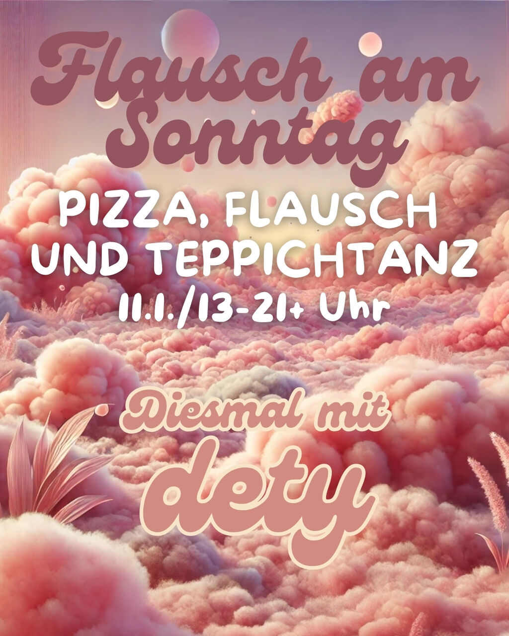 Pizza, Flausch und Teppichtanz! Draußen dunkel, drinnen glitzerts und dety macht Musik für die Seele und das Tanzbein zugleich!