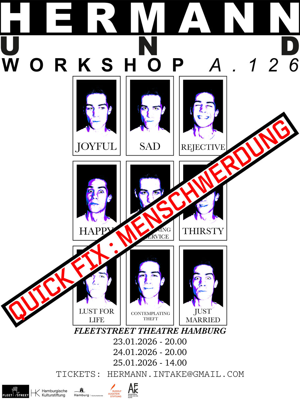 Dear Participant, after careful observation, you have been selected for the Quick Fix- Menschwerdung Workshop, a lecture by Hermann. Your attendance is required. Not showing up may lead to re-evaluation or reclassification.