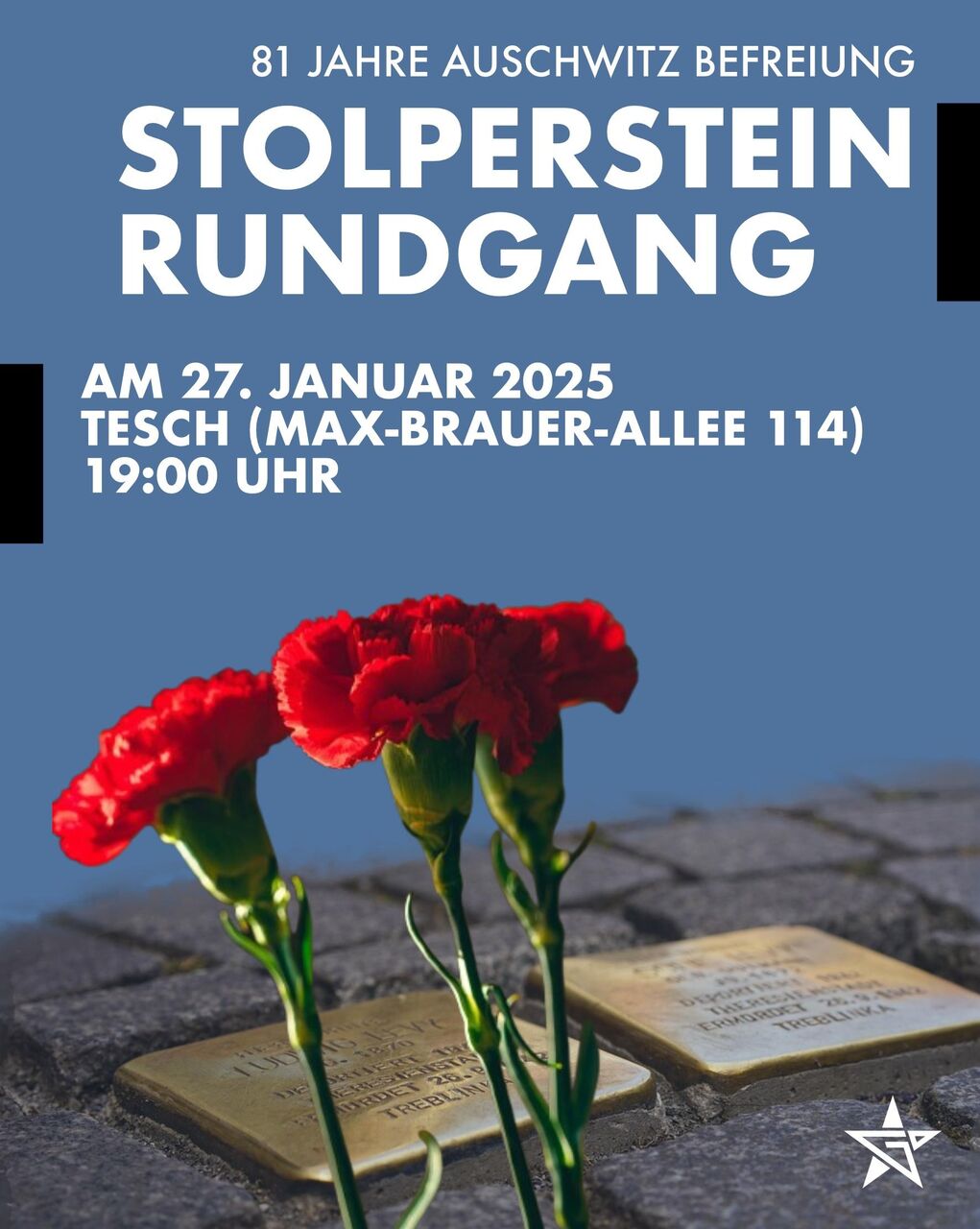 Am 27.01., dem Befreiungstag von Auschwitz durch die Rote Armee sowie dem internationalen Holocaustgedenktag möchten wir auch dieses Jahr erneut einen Stolpersteinrundgang durch Altona veranstalten und an unsere deportierten Nachbar*innen und ermordeten Genoss*innen gedenken.
