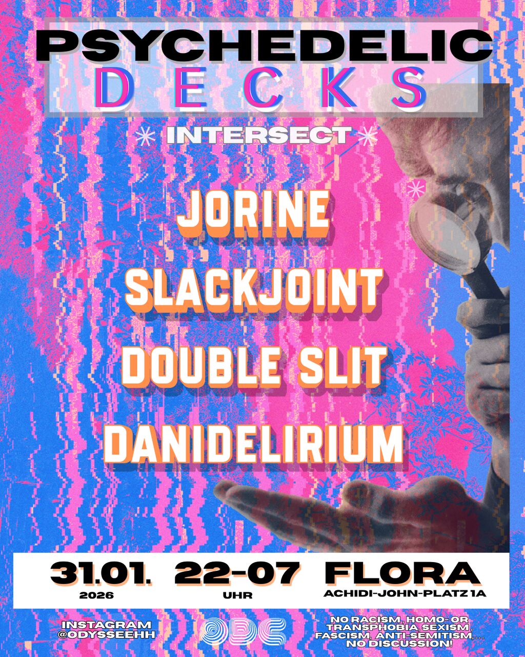 Die ODC bringt technoid-trippigen bis trancy psychedelic Sound in die Flora mit JORINE(NL), SLACKJOINT, DOUBLESLIT & DANIDELIRIUM(ZA).