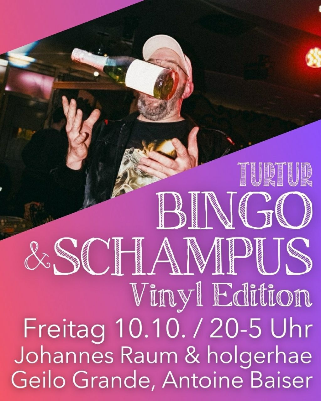 Spielt um literweise Schampus oder schicke Schallplatten in der @bingoundschampus Vinyl Edition! Durch die Spiele führen Johannes Raum & holgerhae, im Anschluss wird weitergetanzt zu den Sounds von Antoine Baiser und Geilo Grande aka Meider & @loveisabattefield