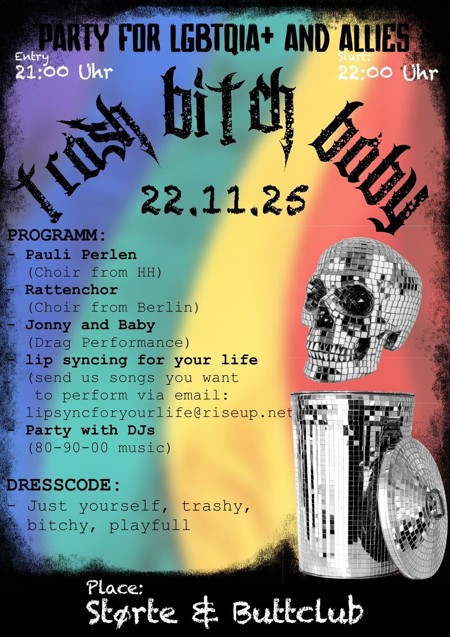 Queere trashige Party mit Chorauftritten und Drag Perfomence., lip syncing und DJ's!