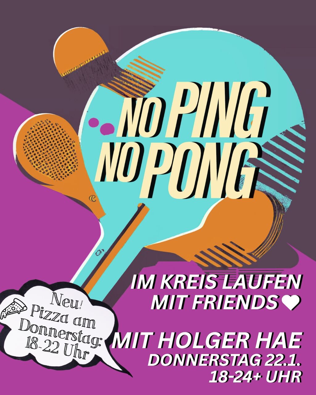 Tischtennis im Turtur, jetzt mit Pizza! Für die Musik sorgt diesmal der wunderbare Holger Hae!