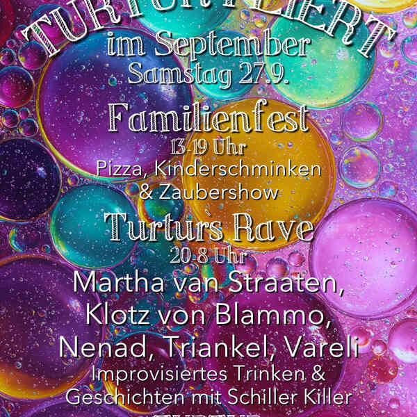 Turtur's Rave // Mit den Klängen von Martha van Straaten, Klotz von Blammo, Nenad, Triankel und Vareli, dazu gibts improvisiertes Trinken & Geschichten mit Schiller Killer!